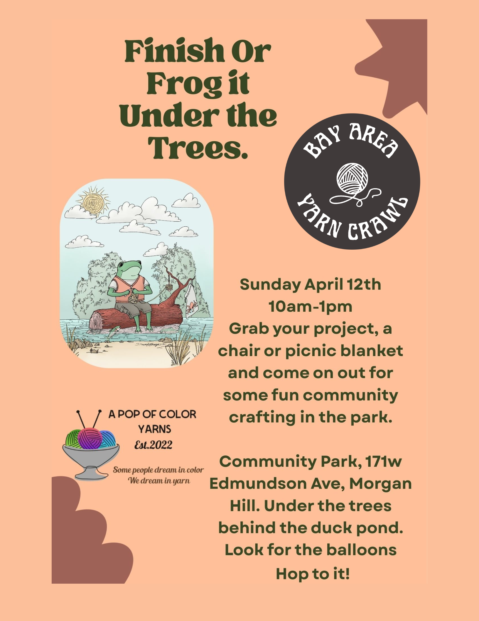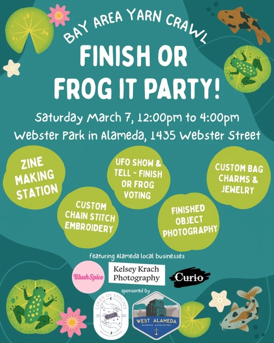 March 21, 2026 is the last Saturday of the Bay Area Yarn Crawl, making Pucks and Purls a great way to wrap-up the Crawl, cast-on your new projects, and show off the goodies you picked up.